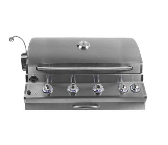 Jackson Grills SUPREME series four burner built in features four stainless steel burners at 10,500 BTU per burner, stainless steel double wall hood and a 15,000 BTU ceramic infrared rear rotisserie burner. Heavy duty rotisserie kit and built in cover are included. This grill offers high quality construction with premium features.