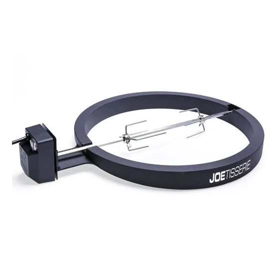 The durable cast aluminum JoeTisserie transforms the Kamado Joe Classic into a new kind of spit, harnessing the self-basting action of a rotisserie inside the Kamado Joe’s signature high-fire ceramic body for meats that are smoky, juicy and tender. With a quiet-but-powerful 120V motor that can spin up to 50 pounds of chicken, prime rib or Boston butt, the innovative JoeTisserie features a distinctive wedge shape so cooks can seal off the kamado dome for optimal heat retention. The durable spit rod is easy to install and features quickly adjustable forks for excellent balance, and the constant, steady rotation preserves the meat’s natural juices for an even cook.