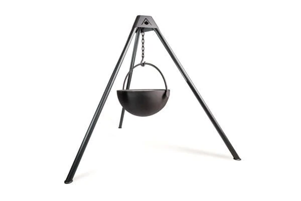3) SIMPLE, NO TOOLS SET UP AND TAKE DOWN. The Cauldron has been designed to be perfectly functional. Only a single cap pin holds the entire assembly together. You can take a Cauldron down and move it in seconds. And simple? Seriously, if you can’t figure out how to set up a Cauldron just by looking at the parts, you probably should re-evaluate the notion of being around real fire in the first place.