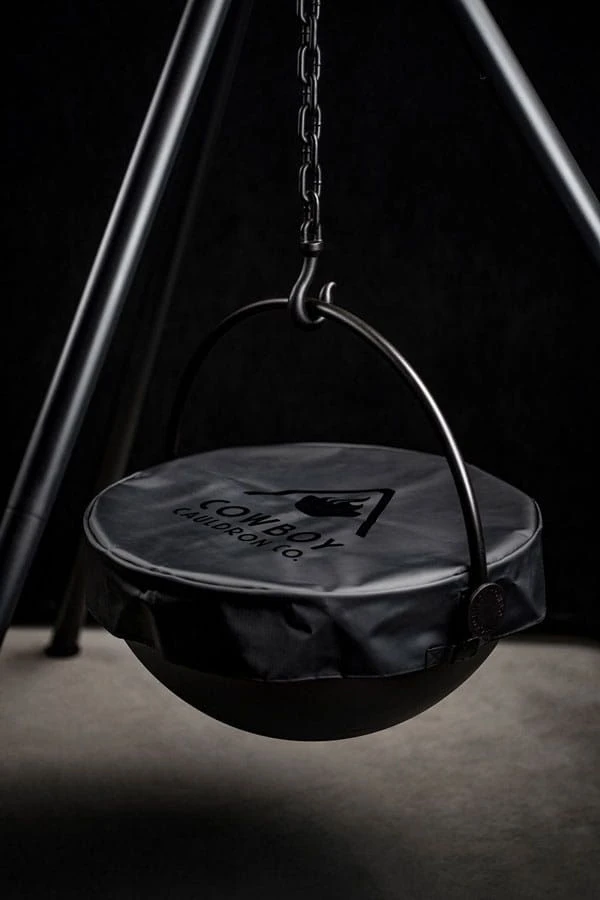 6) SECURABLE RAIN & SNOW COVER There are lots of fire pits out there. Go ahead. Check them out. One thing you will immediately see is that almost none have covers. People like cooking with Cauldrons, but nobody likes ash soup. If you buy another fire pit, you will either learn to love ash soup or you will have to make yourself a cover. Best of luck with that. If, on the other hand, you buy a Cauldron, you will get a cover that is lightweight, (safe for use while wearing flip-flops) rigid, waterproof, sun-proof, and has our logo on one side so that if you love your Cauldron the way most of our customers do, you can proudly (but subtly, it’s black-on-black) let people know what the amazing thing in your yard is. Oh yeah, our covers also have clips that keep them from blowing away in a squall, for you folks who live in windy areas.